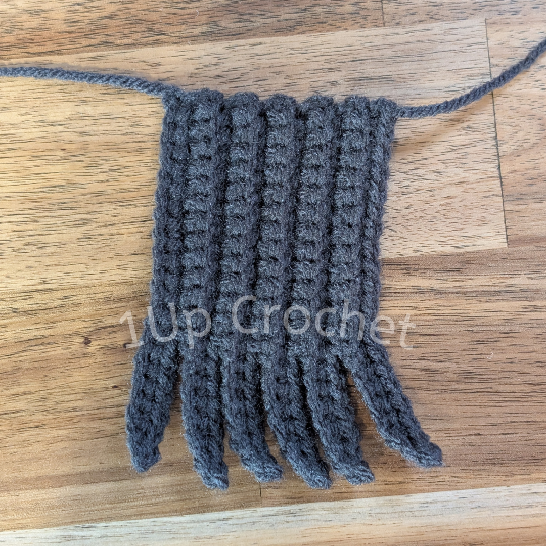 For the second leg, do not fasten off yet! Leave your work on your hook.