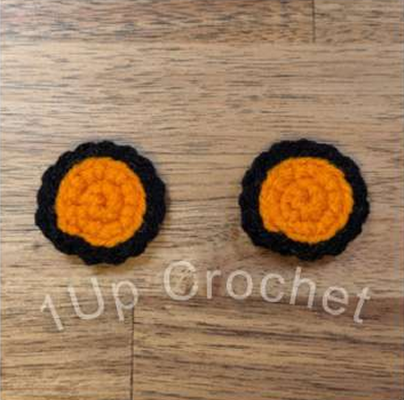 If you prefer to sew the eyes on, leave a long tail for sewing. Gluing the eyes on will help preserve the clean line between the orange and black colors. Use whichever application method you prefer during assembly.